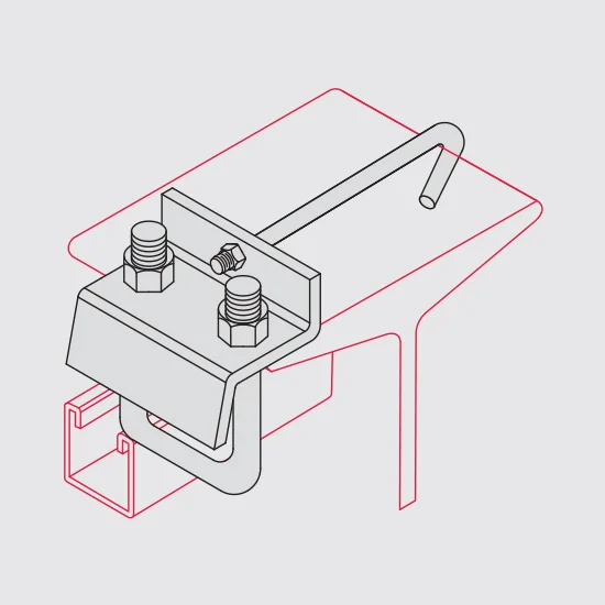 Products > ZI-Strut > Beam Clamps > Strut to Beam Clamp With Square U-Bolt and J-Hook ( ¹³⁄₁₆” & 1 ⅝” channel)