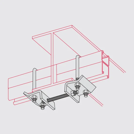 Products > ZI-Strut > Beam Clamps > Strut to Beam Clamp With Square U-Bolts and Connecting Stud, Double (2 ⁷⁄₁₆” & 3 ¼” channel)