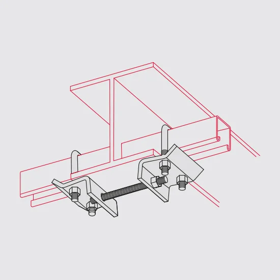 Products > ZI-Strut > Beam Clamps > Strut to Beam Clamp With Square U-Bolts and Connecting Stud, Double (¹³⁄₁₆” & 1 ⅝” channel)