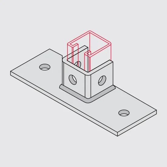 Post Base Single Channel 2 Hole Square Flush 1 ⅝”